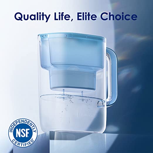 Waterdrop 200-Gallon Long-Life Lucid 10-Cup Water Filter Pitcher, NSF Certified, 5X Times Lifetime, Reduces Chlorine, BPA Free, Blue