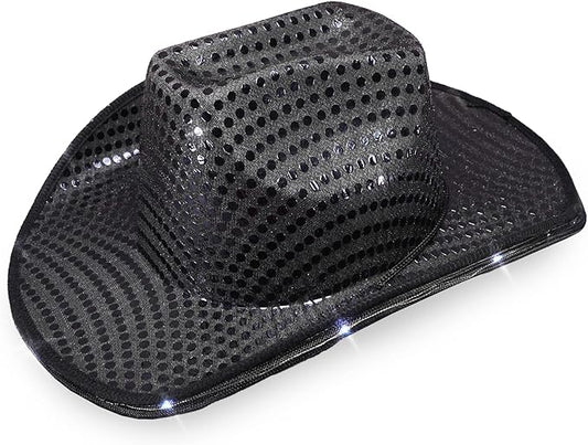 Black Sequin Light-Up Cowboy Hat for Women Girls, LED Sparkly Space Cowgirl Hat for Party