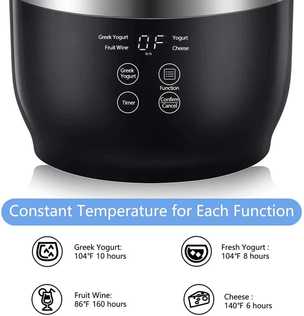 - STAINLESS STEEL INNER POT: The unique 304 stainless steel inner pot creates constant and equal heating transmission around 104℉, maintaining the activation of yogurt. Recommend to boil milk and cool down before making yogurt.