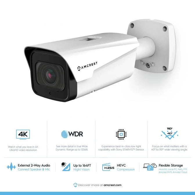 - Features a Sony Starvis 1/2.5” 8MP progressive image sensor to achieve unsurpassed low-light capability and night-vision up to 164 feet.